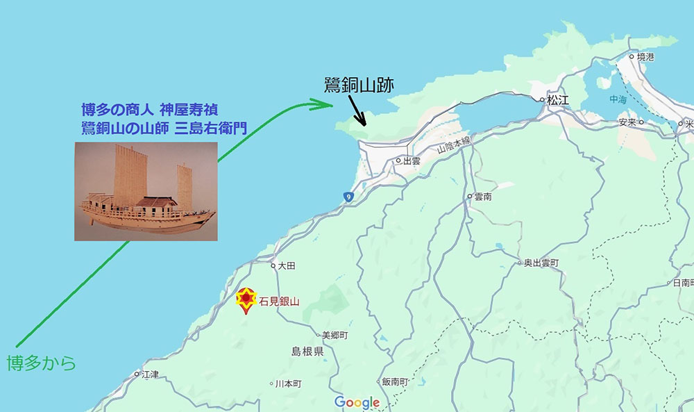 当時は、銅が主要な輸出品でしたので、出雲の国にある鷺銅山へ向かって、博多の商人、神屋寿禎は日本海を航海していました。