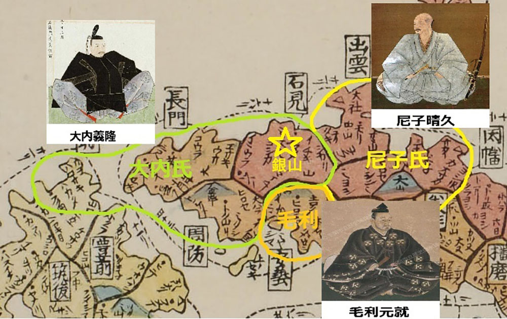 銀山の領主となった戦国大名大内氏と隣国の尼子氏との間で争奪戦が繰り広げられました。