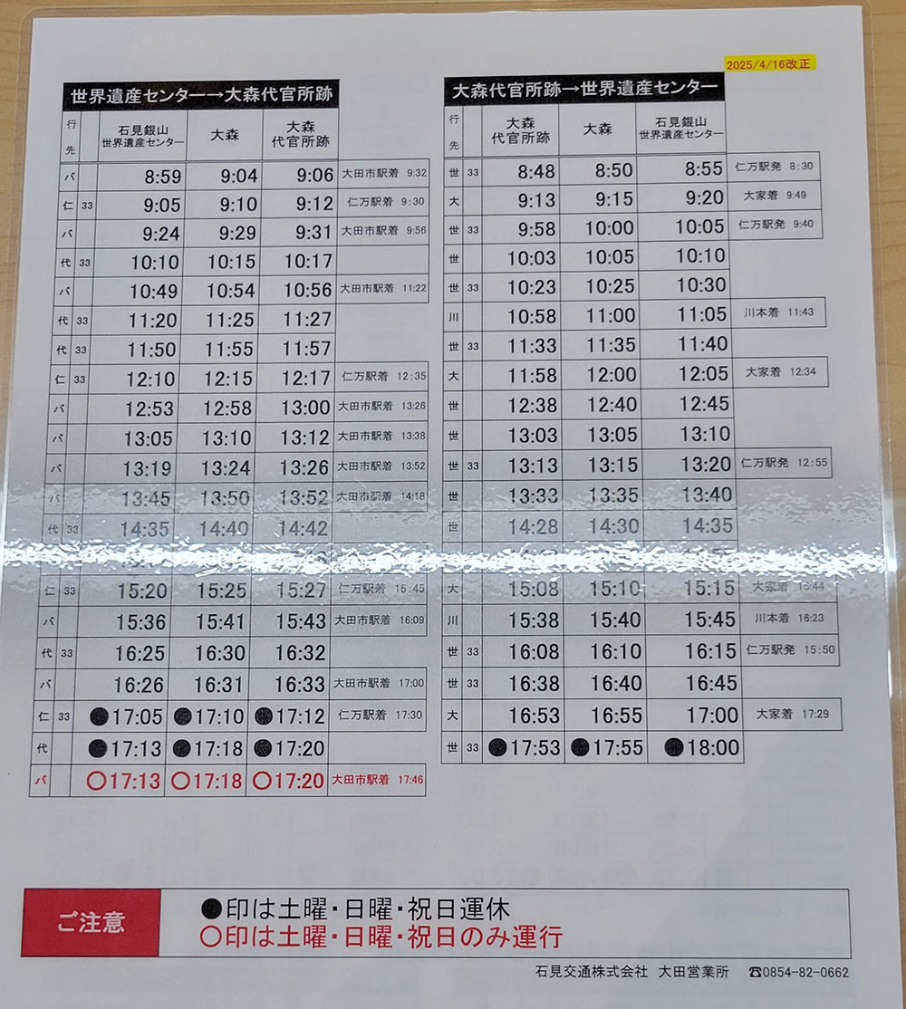 *石見銀山まで接続するバスが出ており、石見銀山までの料金は、240円、7分で到着します。