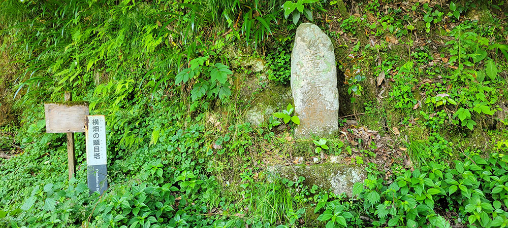 約1km進むと左手に「横畑の題目塔」がありますが、そのまま直進します。