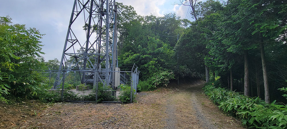 約2km先の鉄塔を目印として、右折し木立の中へ入った辺りが、七本槙(しちほんまき)です。