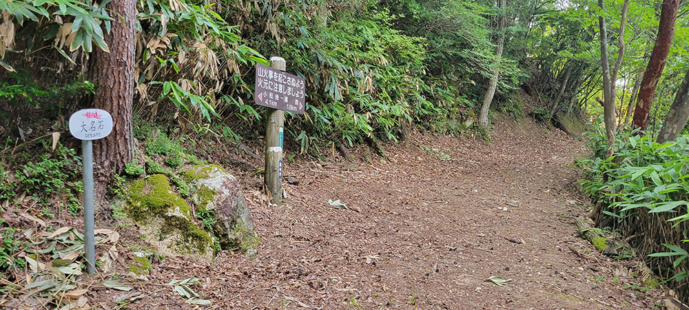 さらに1km先に、大名が休んだと言われる石と、大名石の案内標識があります。