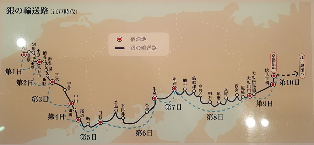 危険な日本海の航路を避け、銀を幕府の財源とするために、採掘された銀は陸路で瀬戸内海側へ運ばれるようになる。