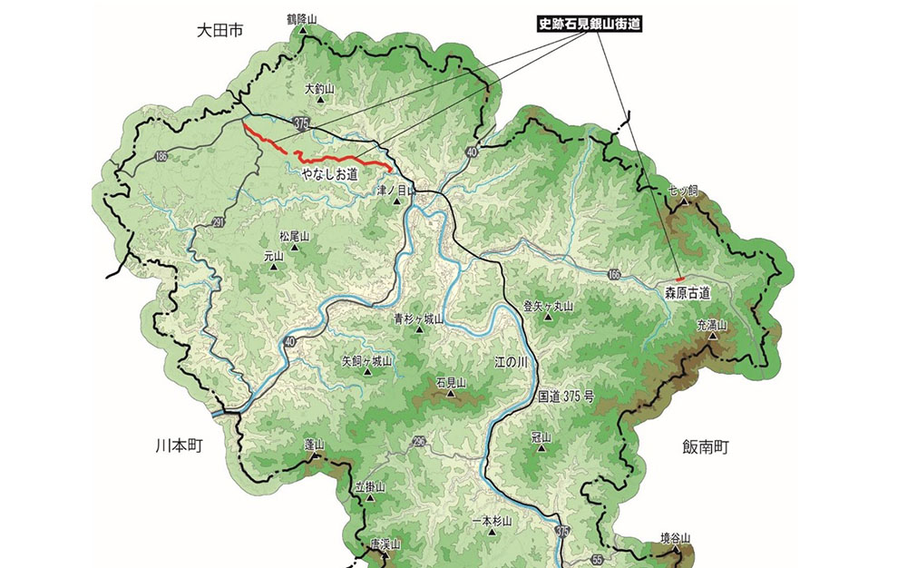 尾道道の一部で、美郷町を通るやなしお道や森原古道などは、江戸時代を通じて銀を運んだ道として、近年国史跡に指定されている。